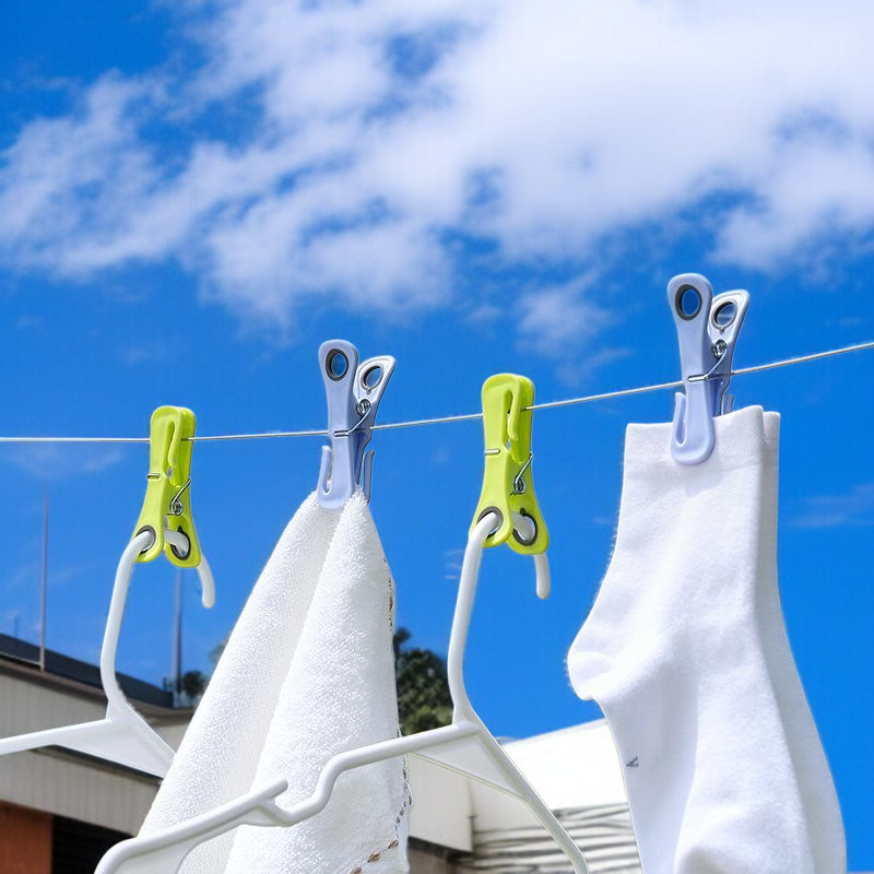 ● Unsere winddichten Kunststoffklammern sichern Ihre Kleidung und Socken zuverlässig auf der Leine, selbst bei starkem Wind, und verhindern das Herunterfallen.